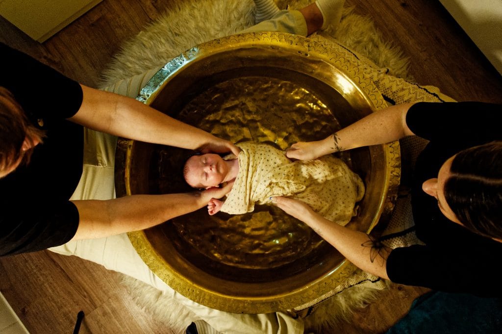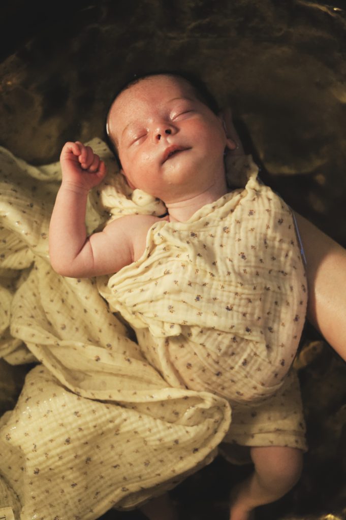 Un instant hors du temps. Un retour aux sensations in utero pour le bébé, un moment de connexion avec les parents et de plénitude. La pièce baignait dans une lumière douce, les gestes étaient lents et apaisants…Et l’émotion palpable. Chaque déclenchement de mon appareil captait la délicatesse de l’instant : le bruit de l’eau, les regards complices, les petites mains détendues, le corps lové dans l’eau tiède.