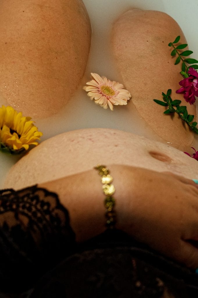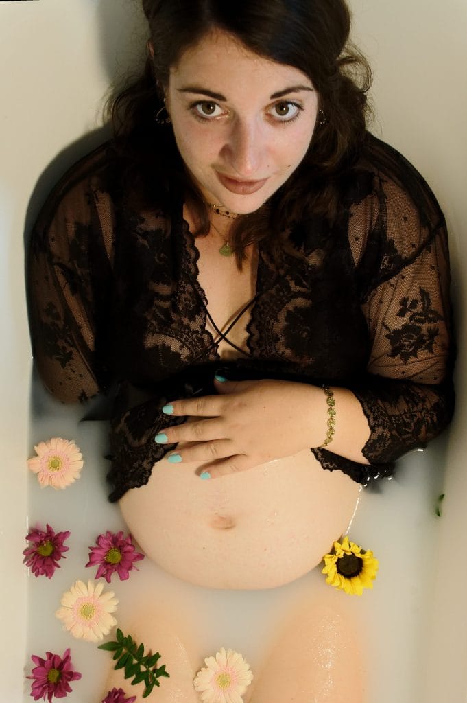 La séance bain de lait est un shooting photo original et intime, qui se déroule généralement dans une grande baignoire remplie d’eau tiède, de lait (ou de poudre de lait pour un effet plus laiteux) et souvent décorée de fleurs fraîches ou séchées.