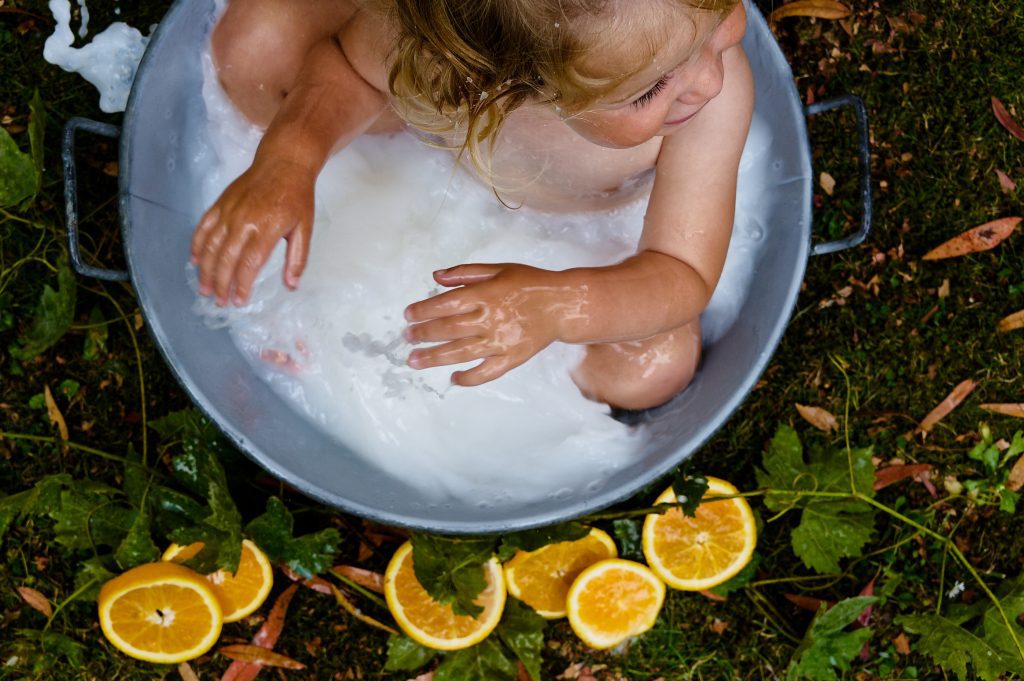 Qu’elle soit réalisée en intérieur ou en extérieur, la séance bain de lait a ce pouvoir de créer un univers doux, apaisant, presque suspendu dans le temps. C’est une bulle de tendresse, une invitation à la contemplation, où chaque détail compte : le regard curieux de l’enfant, les pétales qui flottent, la transparence de l’eau, la lumière qui caresse la peau…